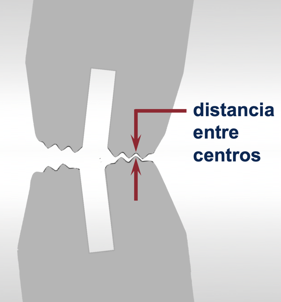 La distancia entre centros, el estrecho espacio entre los dentados de las mordazas de sellado superior e inferior, debe ajustarse al instalar las mordazas y, por lo general, no debe modificarse. Nunca utilice la distancia entre centros para ajustar la cuchilla.