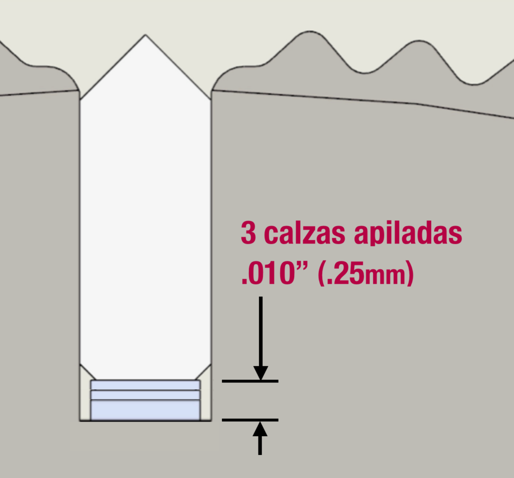 Mientras se retira la cuchilla, es un buen momento para quitar las calzas y limpiar a fondo la ranura. La acumulación de producto dentro de la ranura puede causar un efecto de esponja en su cuchilla.
