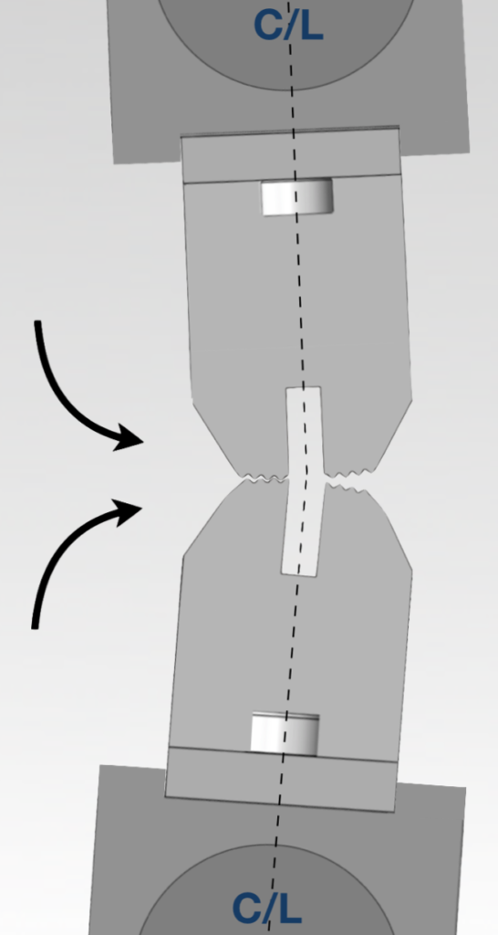 Las mordazas están desalineadas diagonalmente entre sí y deben ajustarse para que los dientes queden paralelos.