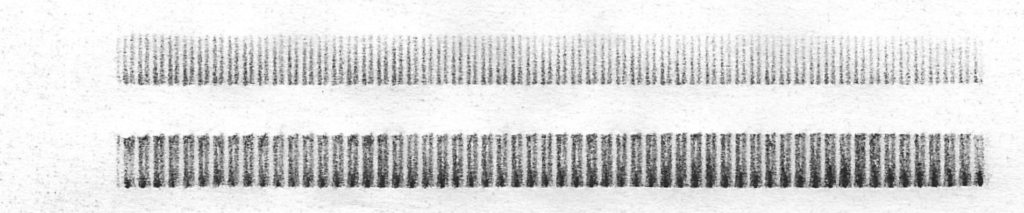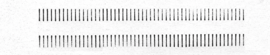 En el siguiente ejemplo, los dentados verticales muy desalineados solo hacen un contacto estrecho entre sí y dejan una impresión de líneas oscuras y bien definidas.