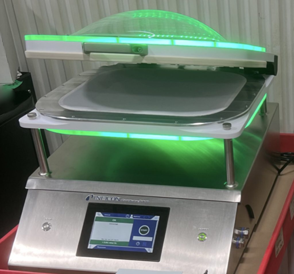 Un Técnico Especialista de Greener asiste a la prueba para optimizar la configuración de la máquina de empaque y garantizar que los resultados de la prueba de fábrica coincidan con los obtenidos en nuestro Laboratorio de Empaque.