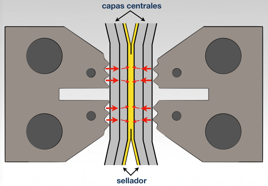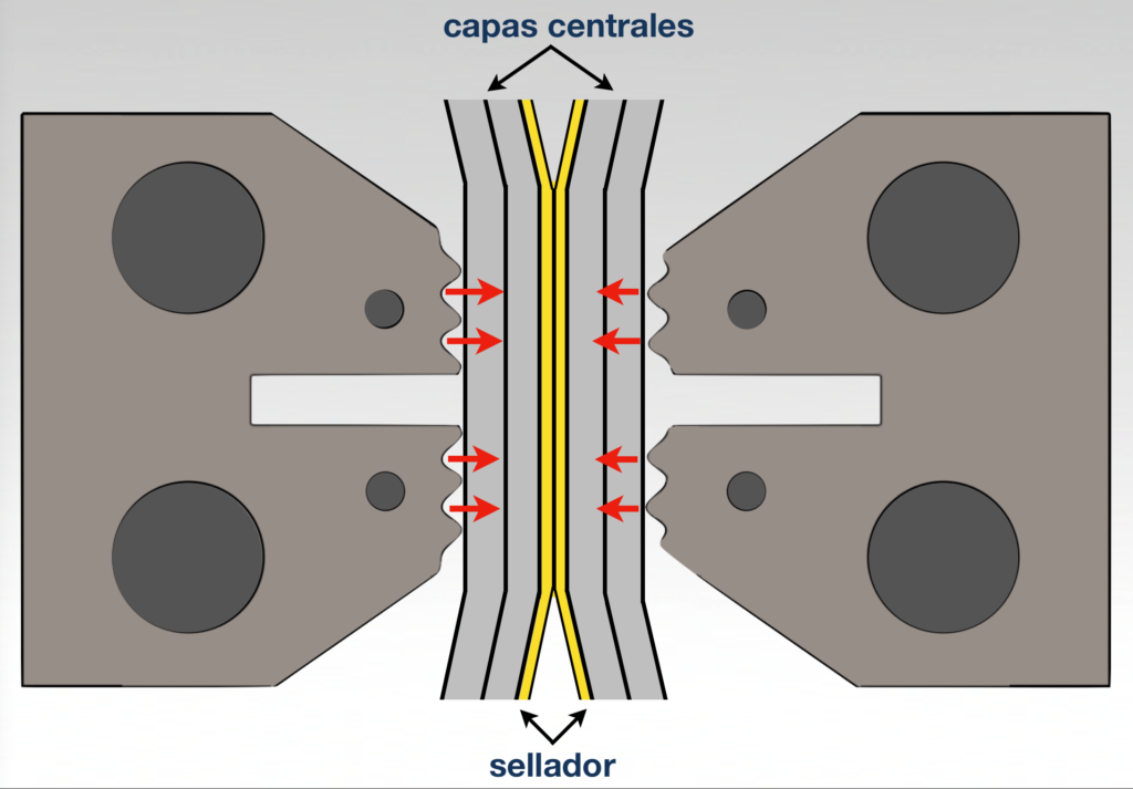 El objetivo es alcanzar la temperatura de inicio del sellado en la capa selladora lo más rápido posible sin calentar las capas centrales hasta su temperatura de distorsión.