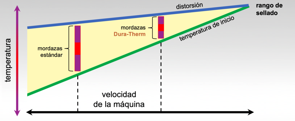 Una amplia rango de sellado permite una variabilidad normal dentro del proceso de empaque. Una fuente principal de esta variabilidad es el ciclo normal de temperatura de las mordazas.