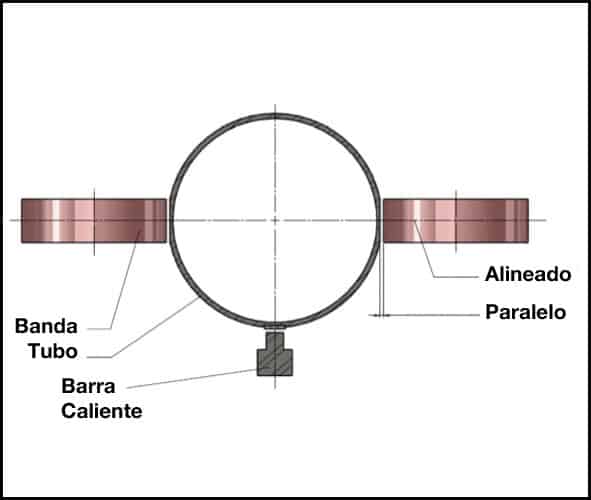 - Asegurarse que las partes planas del tubo formador están alineadas con las bandas de tracción.