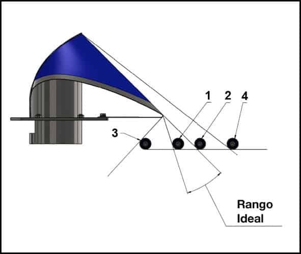 - La posición de los rodillos para que exista contacto uniforme entre el material de envoltura y el cuello formador (en el rango ideal entre opciones 1 y 2 arriba)