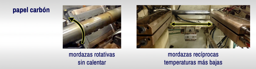 El papel carbón funciona mejor con mordazas rotativas sin calefacción y con mordazas recíprocas a temperaturas más bajas.