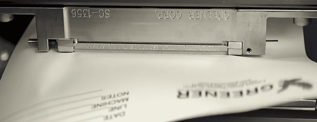 Ya sea para resolver problemas o prevenirlos, siempre etiquete su impresión con la fecha, la línea y la máquina, la flecha de dirección y el número del par de mordazas para poder comparar los resultados a lo largo del tiempo y realizar un seguimiento de los cambios.