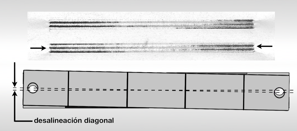 Tanto en las mordazas rotatorias y mordazas recíprocas, las impresiones de carbón indican si los dentados están desalineados.