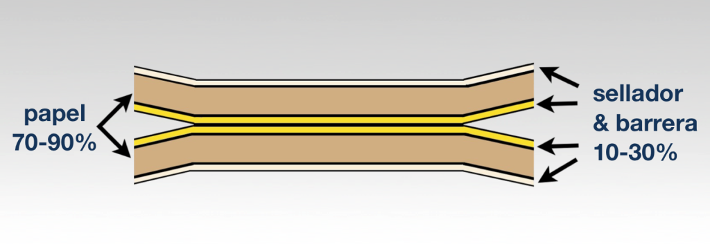 Las estructuras basadas en papel, con mayor espesor, rigidez, menor conductividad térmica y capas de sellante potencialmente más delgadas, pueden requerir tiempos de permanencia más prolongados para que el calor de las mordazas llegue al sellante y lo active. Esto reduce su rango de sellado.