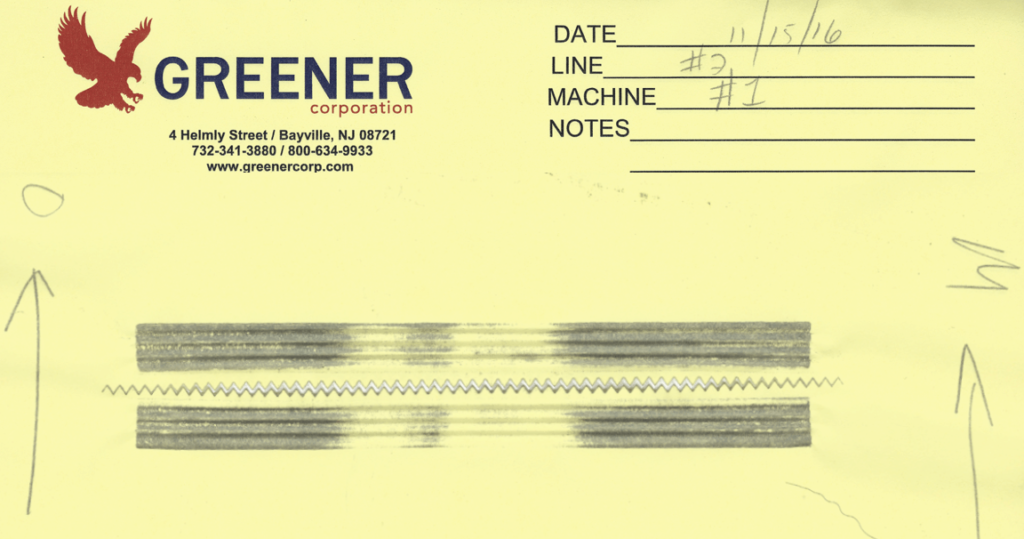 Take sealing jaw impressions regularly to optimize seal quality, package appearance, and productivity. You can purchase carbon and carbonless paper from Greener or many other sources.