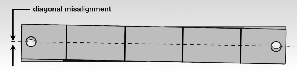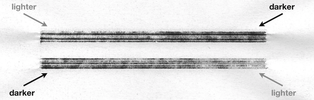 This next example displays less severe diagonal misalignment; the impression is lighter on the upper left and lower right, and darker on the lower left and upper right.
