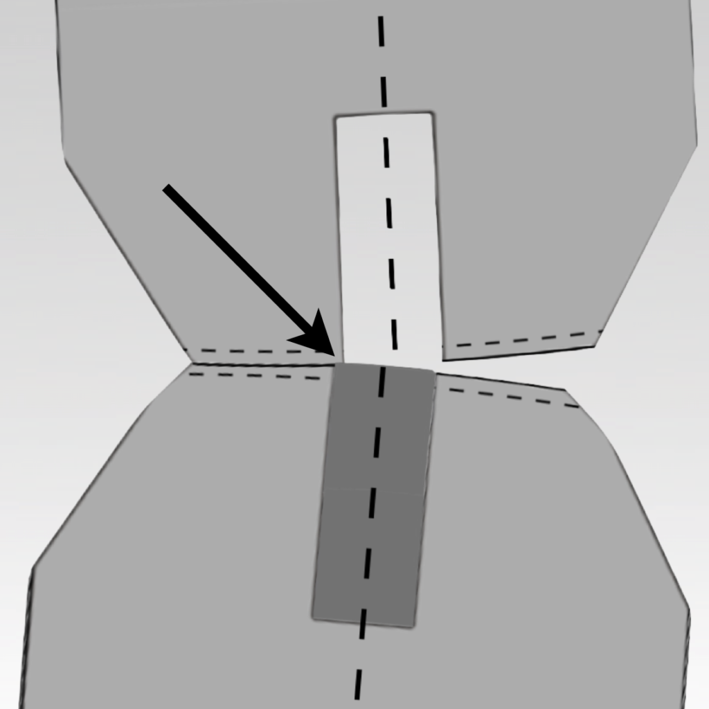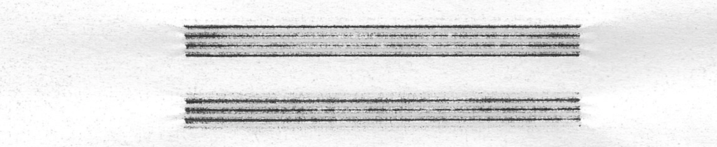 On this next example, severely misaligned vertical serrations only make narrow contact with each other and leave an impression of dark, well defined lines.