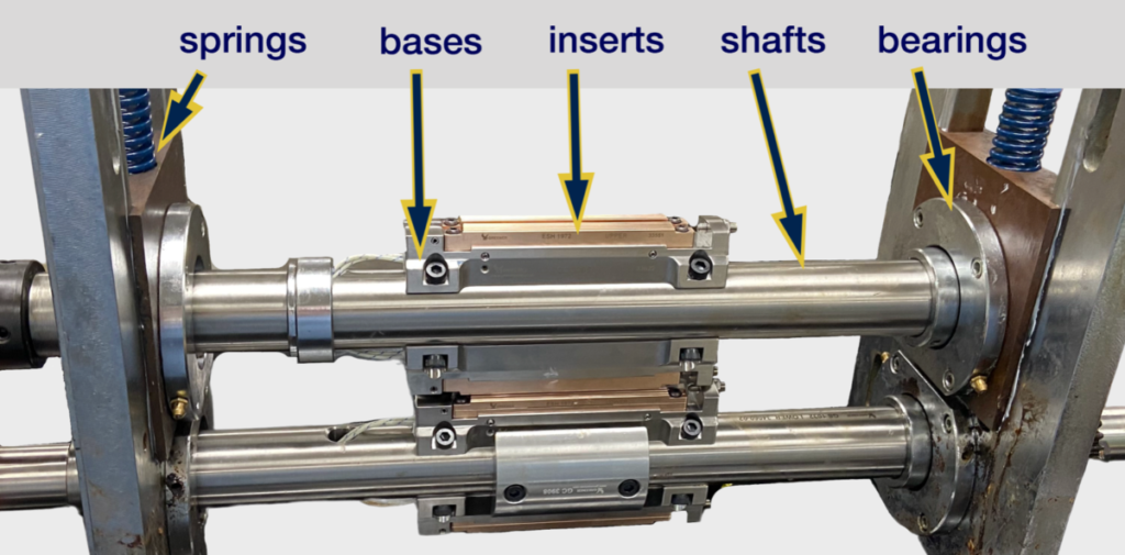 Mechanics had to overly rely on spring pressure adjustments on these machines. Accurately setting the clearance between the jaws was difficult, since it required the bearing blocks to be shimmed.