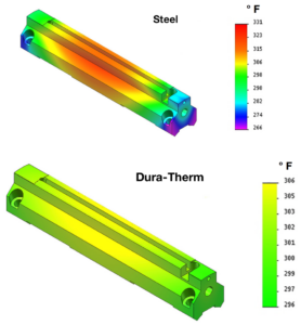 Jaws manufactured from Dura-Therm material provide more responsive, consistent heat transfer across the package to help seal off channel leakers without overheating the film.
