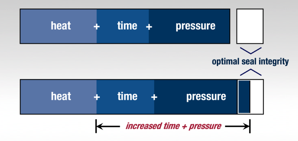 But since heat, time, and pressure are closely linked and can be interdependent, a compensating increase in dwell time, pressure, or both can maintain seal quality.