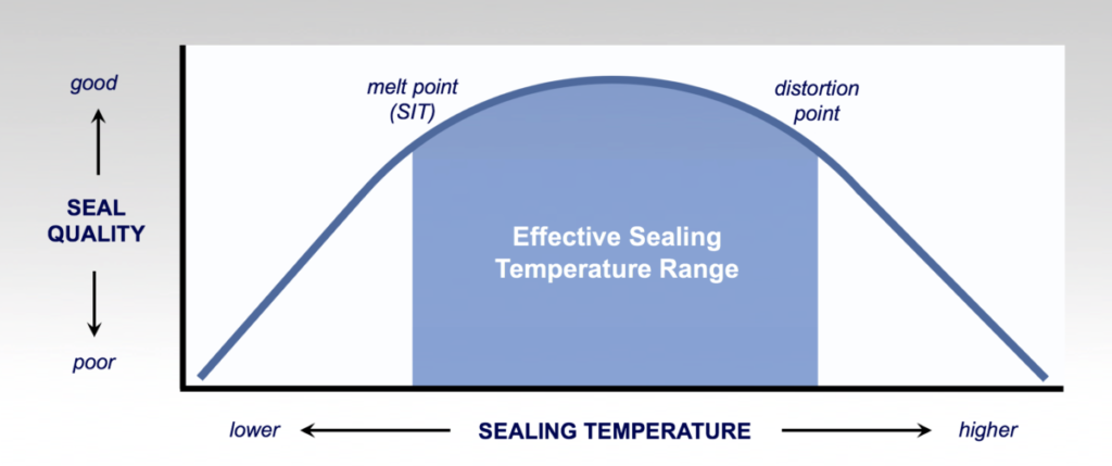 All packaging materials have an Effective Sealing Temperature Range between the Melt Point, or Seal Initiation Temperature (SIT) of the sealant layer, and the Distortion Point, where package appearance and seal quality deteriorate.