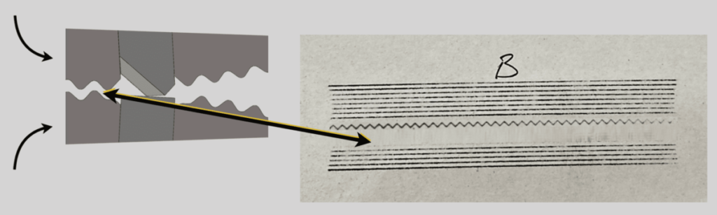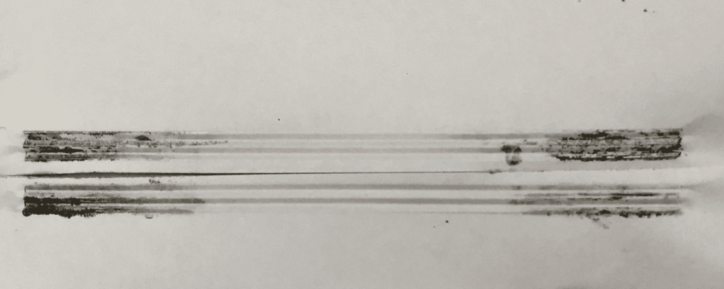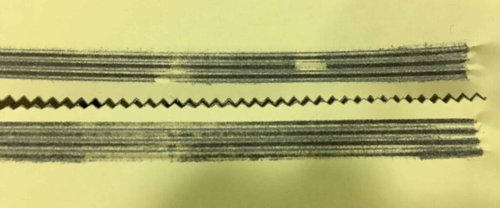 Carbon impressions indicate changes that occurred during previous production that might otherwise go unnoticed, such as damage to jaws and knives, product contamination, or misadjustment of the clearance, sealing pressure, and other variables. You might find that sealing pressure is uneven across the length of the jaws, or that the serrations are not properly aligned.