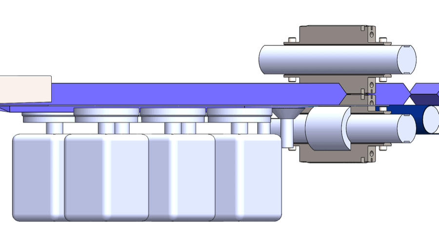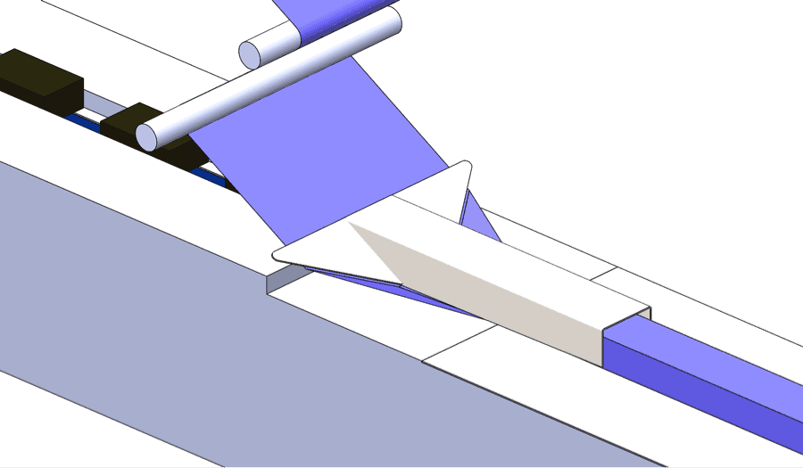 - Adjust the product rails on the infeed so that as they guide the product into the forming box the film tube forms evenly around it, without excess space on either side.
