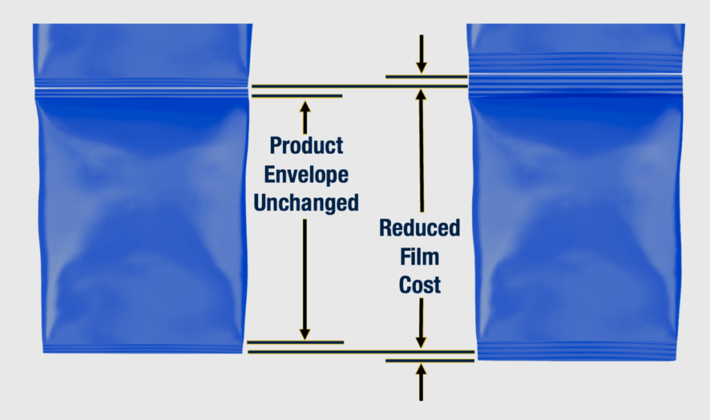 With reduced seal widths you can also decrease per-package film costs while maintaining the same product envelope.