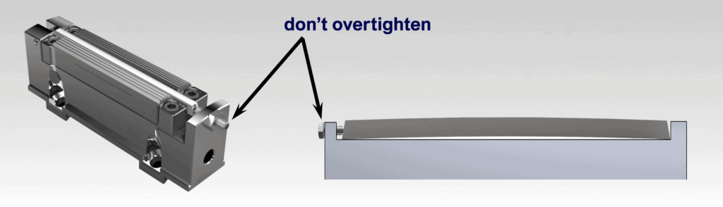 If your anvils and knives are held in from the end, don’t overtighten the set screw—this can arc them upward in the center and prevent a clean cut.