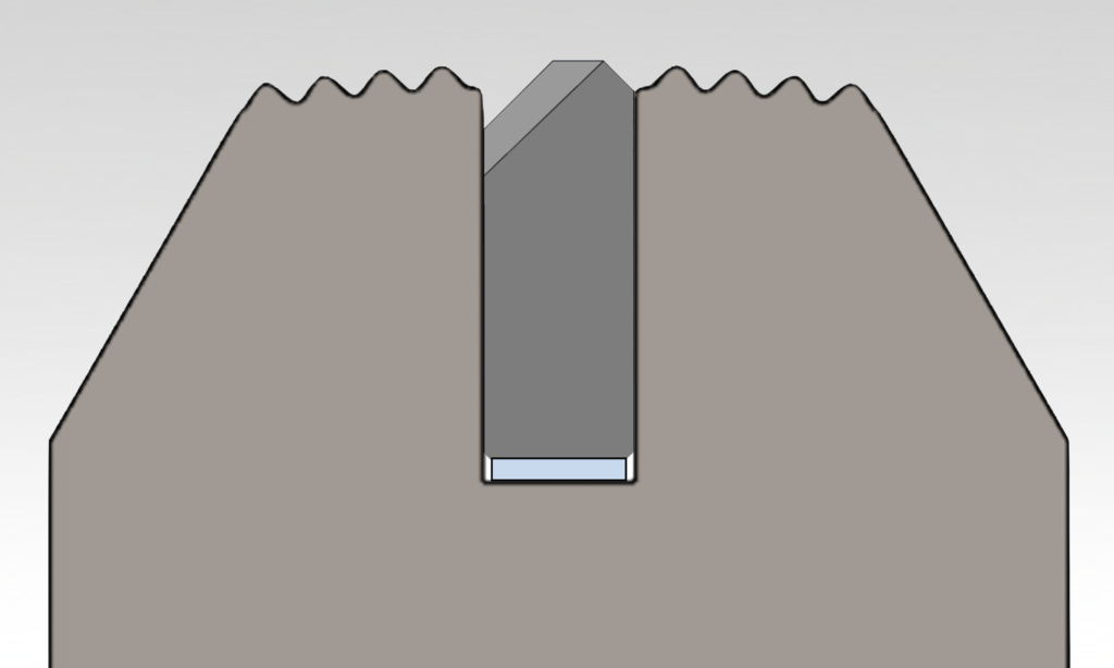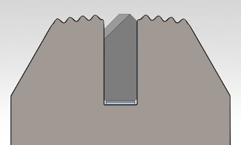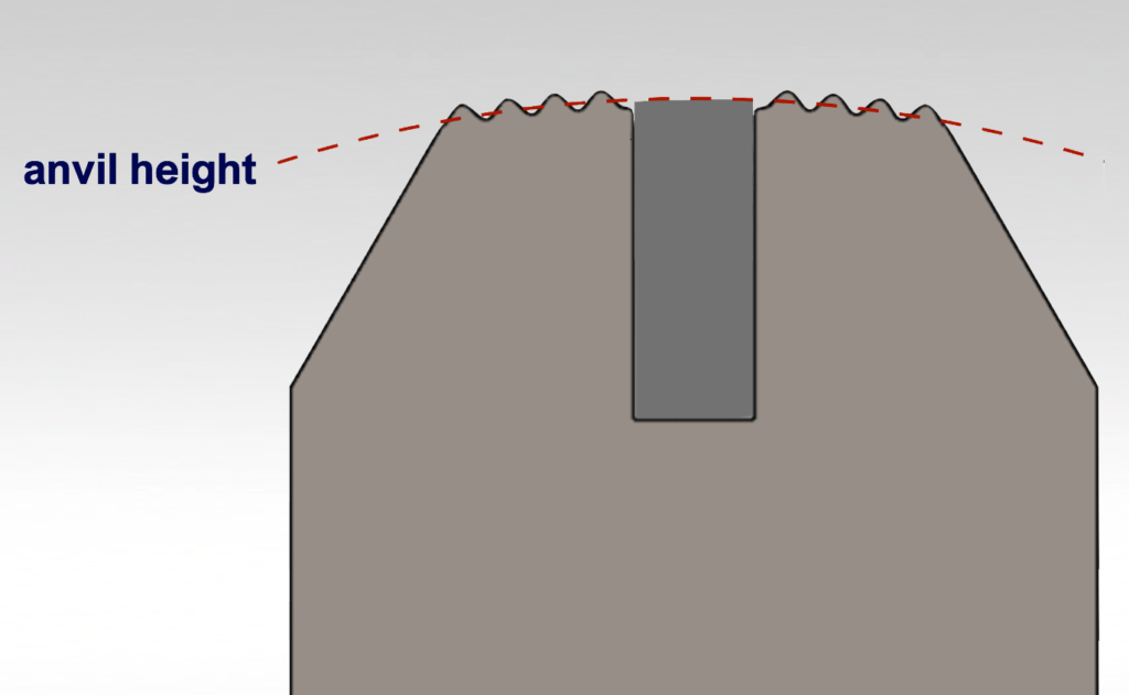 The height of the anvil should range between the root and the mid-point of the serrations. Sealing jaws from some manufacturers have deeper slots that require shims to raise the anvil up to the proper position.