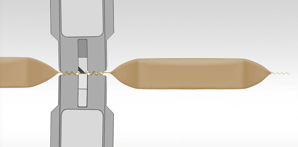 Sealing jaw setup and design become especially critical. The serrations must apply enough pressure to activate and help move the limited amounts of sealant into gaps to caulk off leaks, yet not exert excess pressure that crushes or splits these more easily damaged structures.