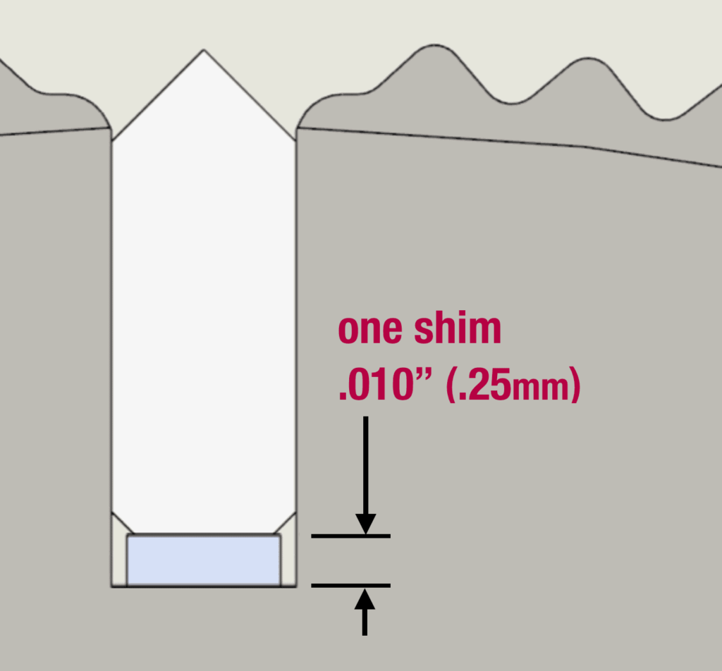 While the knife is removed, it is a good time to remove any shims and thoroughly clean the slot. Product build-up inside the slot can cause a sponge-like effect on your knife.