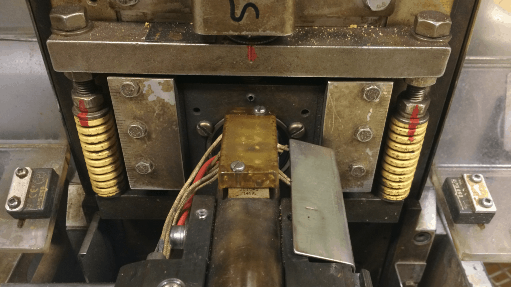 In these situations the knife is usually over adjusted, and therefore striking the anvil with such force that the upper and lower crimpers “bounce” apart and do not transfer adequate pressure and heat to the leading seal of the next package.