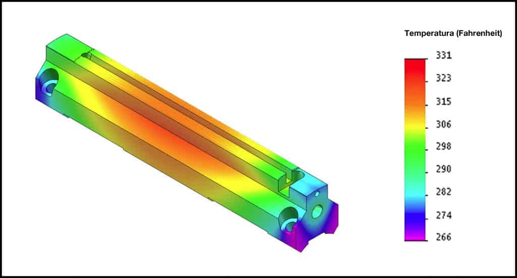 Resultados de pruebas en reseñas termales, ilustradas abajo, claramente muestran la uniformidad del Dura-Therm comparado a la variación de temperatura de mordazas hechas en acero inoxidable:
