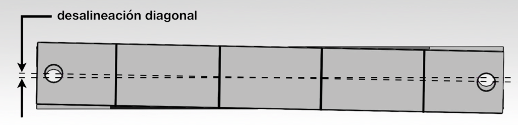 En este caso, la fase o sincronización entre los ejes superior e inferior no está sincronizada y es necesario reajustarla para que los dientes queden correctamente alineados.