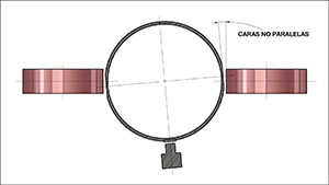 Cuando un tubo formador esta desalineado de delante hacia atrás, un contacto inconsistente con la barra calefactora o banda puede ocasionar sellos distorsionados o abiertos. Tubos formadores torcidos pueden producir bolsas con gráficos desplazados hacia un lado o bolsas que se han torcido – el sello superior e inferior no están paralelos entre si. Tubos torcidos también pueden provocar problemas de desgaste en las bandas.