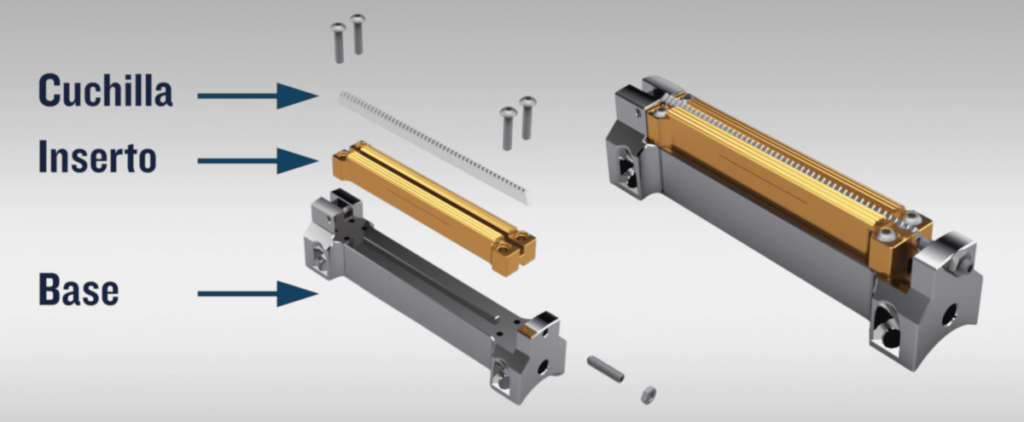 Cuando se reemplazan las mordazas, las resistencias y los termopares, si se utilizan, permanecen en las bases, que permanecen posicionadas con precisión en los ejes. Los nuevos insertos Sella Fácil™ RECAMBIO-RÁPIDO encajan con precisión en las bases, por lo que las estrías ya están alineadas.