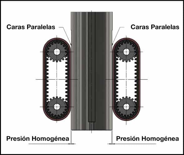 - Asegurarse que las partes planas del tubo formador están alineadas con las bandas de tracción.