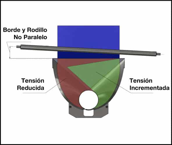 - Asegurarse que los rodillos estén posicionados paralelos al borde delantero del ala del formador, para que la tensión sea la misma a lo ancho de la película.