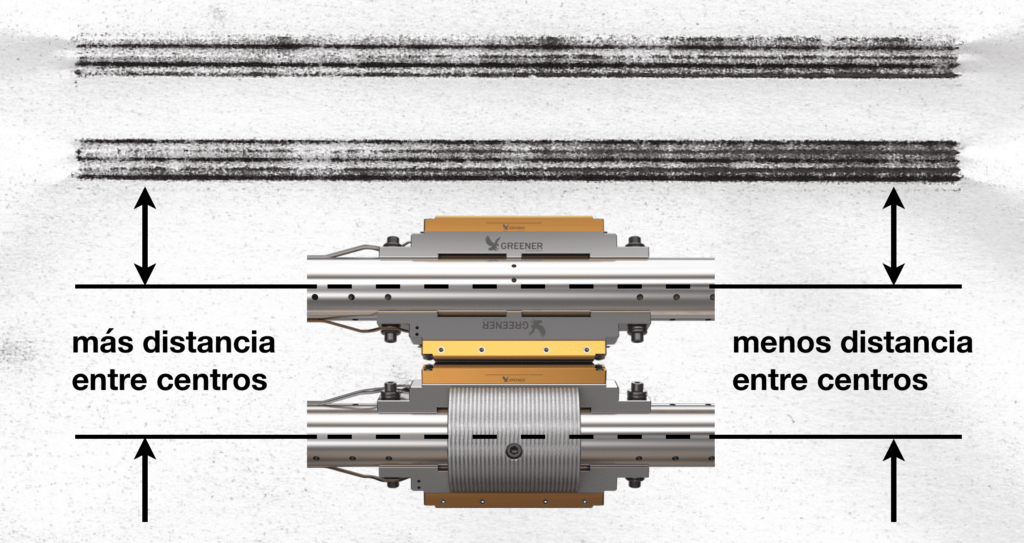 Para las mordazas rotatorias, utilice impresiones de papel carbón para garantizar que la distancia entre centros de los ejes superior e inferior esté correctamente ajustado y paralelo.