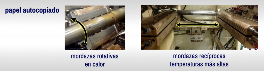 El papel carbón funciona mejor con mordazas rotativas sin calefacción y con mordazas recíprocas a temperaturas más bajas.