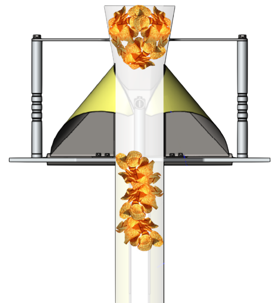 Bottlenecks occur when product strings out as it moves from the inlet chute into the narrower confines of the forming tube. In extreme cases individual product “charges” can bridge together. These product flow issues slow down production speeds, create blockages, and cause leakers when product gets trapped in the seal.
