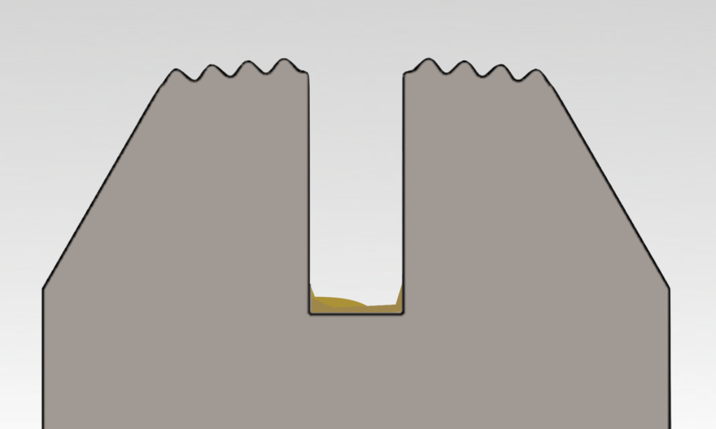 The height of the anvil should range between the root and the mid-point of the serrations. Sealing jaws from some manufacturers have deeper slots that require shims to raise the anvil up to the proper position.