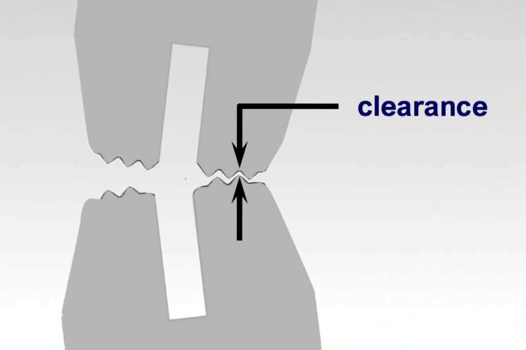 Clearance, the narrow gap between the upper and lower sealing jaw serrations, should be set just wide enough to create an interference fit for a double layer of film—generally about the thickness of a sheet of paper.